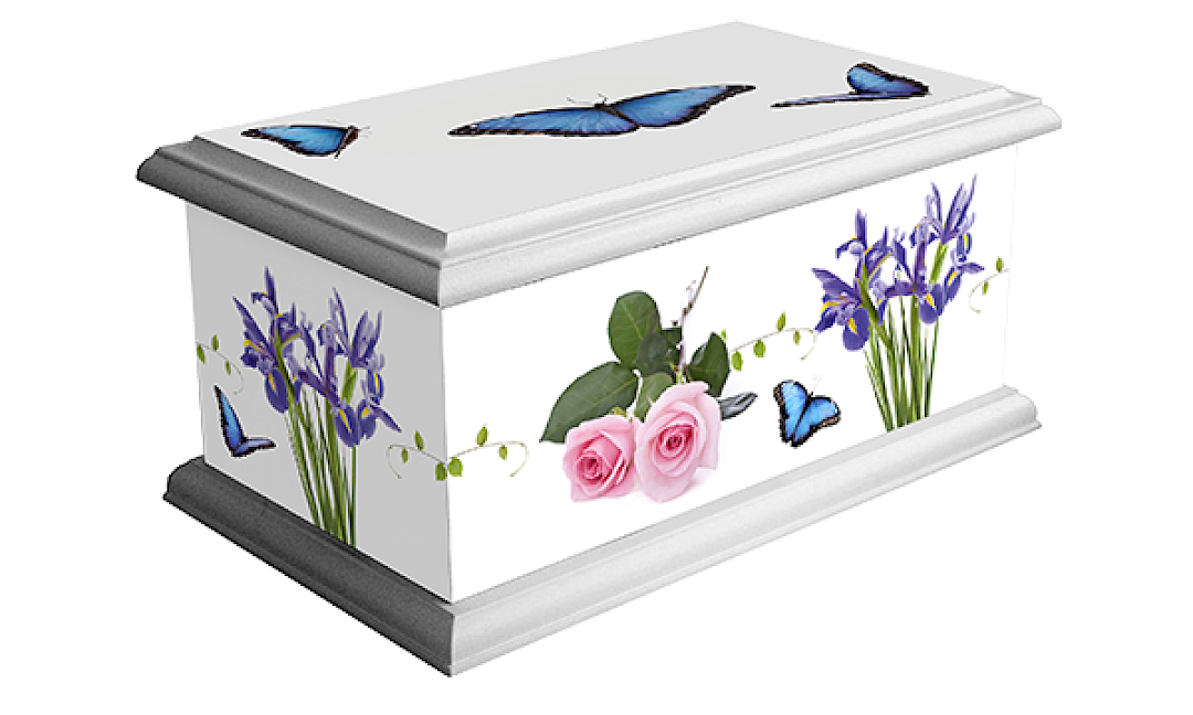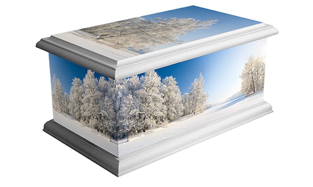 Printed picture ashes casket available in a range of contemporary designs.